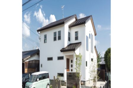 太陽の日差しが似合う明るい家です。白を基調とした清潔で明るい雰囲気を演出しています。